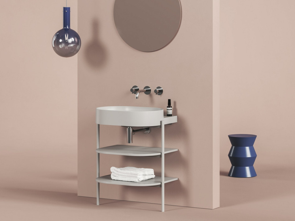 Álló fémszerkezet CS Yard 60 polcokkal a Yard 60 mosdó beépítéséhez matt fehér kivitelben. Smoke Grey színben.
