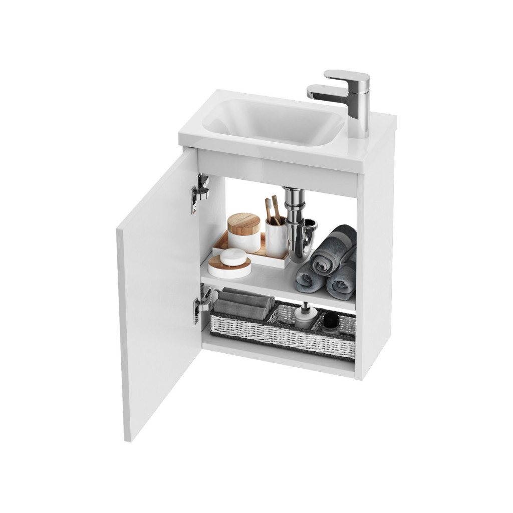 Az alaptestet külön szállítják (ajtók nélkül) összeszerelt állapotban, szerelési készlettel (csavarok, zsanérok, dugók) és fogantyúval. A szekrény tartalmazza a test színében lévő polcot is. Az ajtók csak fehér fényes színben kaphatók, és bal (B) vagy jobb (J) változatban külön rendelhetők. A szekrényt a falra szerelik.