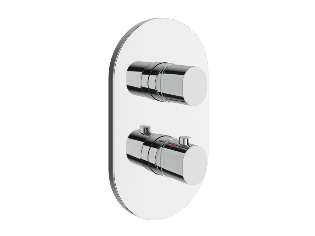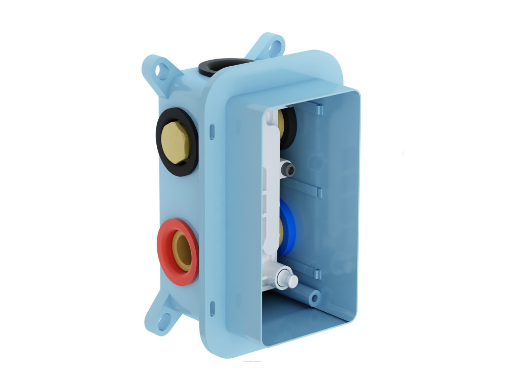 A beltéri termosztatikus csaptelep képes kiegyenlíteni a csövekben lévő nyomás és a víz hőmérsékletének ingadozásait, így biztosítva, hogy a víz mindig olyan melegen folyjon a zuhanyból, ahogy beállítja. A csaptelep teljes testű, saját látható részét és egy rejtett testet tartalmaz, amely közvetlenül a falba szerelhető. A kapcsoló gondoskodik a vízáramlás átkapcsolásáról a fejzuhany és a kézizuhany között. A fejzuhanyhoz vezető vízkimenet a kifolyókaron keresztül van elvezetve.A kézizuhany fel van szerelve Air funkcióval, amely lehetővé teszi a levegő beszívását a zuhanyba. Ennek köszönhetően a víz bőrre gyakorolt hatásának kellemesebb érzete érhető el, és egyben kíméli azt. A zuhanyburkolat alatti lyukak és labirintusok a maradék víz elvezetését okozzák. Az EasyClean funkció lehetővé teszi a vízkő egyszerű eltávolítását a fej- és kézizuhany fúvókáiról.
