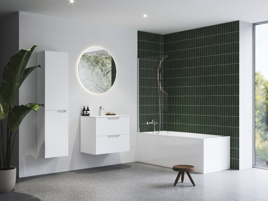 A magas szekrény magasságban állítható polcokkal van felszerelve a felső és az alsó részen. A bal vagy jobb változat a zsanérok oldalától függ. A minőségi zsanérok lassú záródást biztosítanak az ajtóknak. Szerelési készlettel (csavarok, zsanérok, dugók) együtt szállítjuk összeszerelt állapotban. A szekrényt a falra szerelik.Az átfogó megoldás és a fürdőszoba design összhangjának érdekében javasoljuk, hogy a oldalsó oszlopot kombinálja a Classic II koncepció többi termékével.