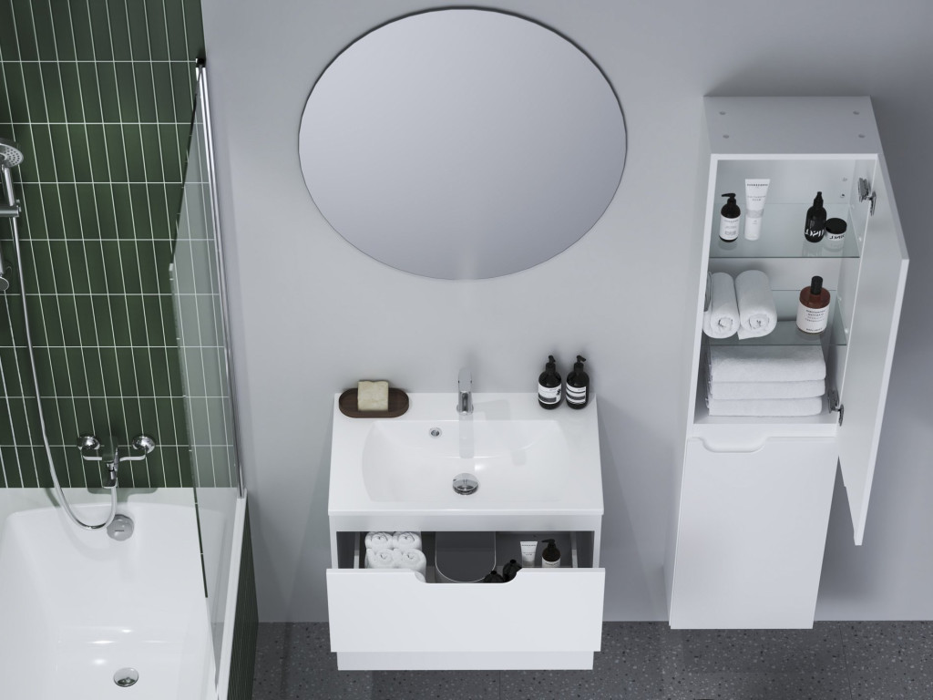 A magas szekrény magasságban állítható polcokkal van ellátva a felső és az alsó részen. A bal vagy jobb változatot a zsanérok oldala határozza meg. A minőségi zsanérok lassú záródást biztosítanak az ajtóknak. Összeszerelt állapotban szállítjuk, szerelési készlettel (csavarok, zsanérok, dugók). A szekrény a falra szerelhető.A fürdőszoba egységes megoldásának és design összhangjának érdekében javasoljuk, hogy kombinálja a Classic II koncepció többi termékével.