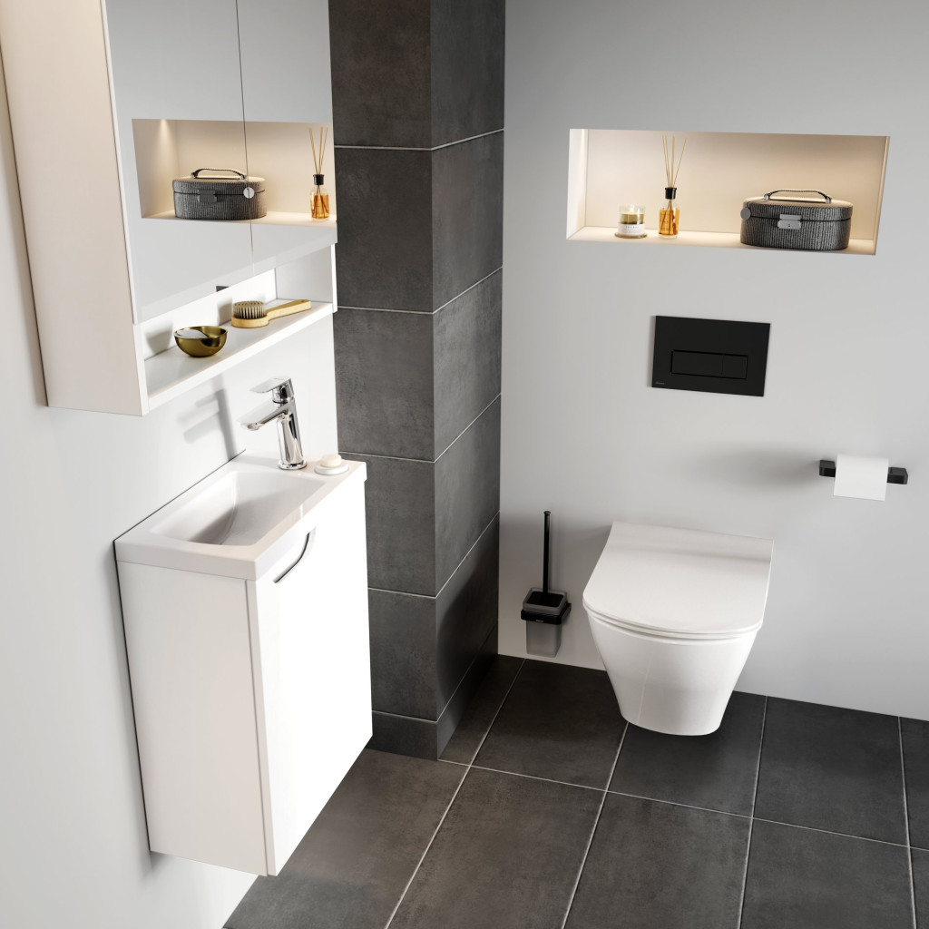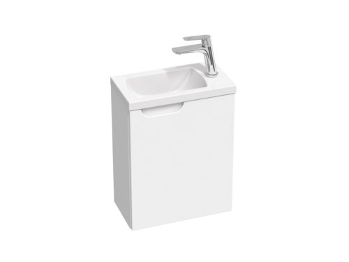 A SD Classic II 400 mosdó alatti szekrény magasságban állítható polccal van ellátva. A bal vagy jobb változatot a zsanér oldala határozza meg. A minőségi zsanér lassú záródást biztosít az ajtóknak. Szerelési készlettel (csavarok, zsanérok, dugók) együtt szállítjuk összeszerelt állapotban. A szekrényt a falra szerelik.A fürdőszoba egységes megoldásának és design harmóniájának érdekében javasoljuk, hogy a mosdó alatti szekrényt kombinálja a Classic II koncepció többi termékével.