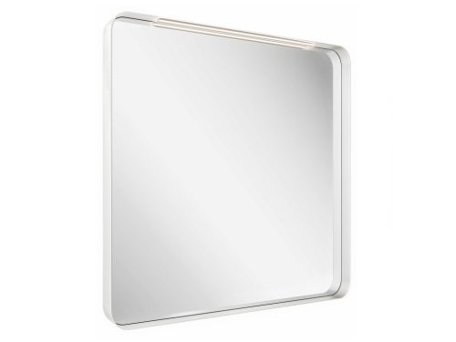 Téglalap alakú tükör vékony kerettel, fehér színben. LED világítással felszerelt.