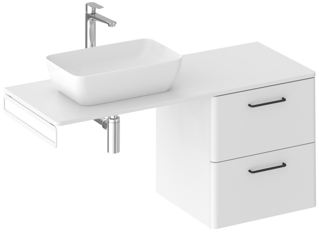 A mélyen impregnált, lakkozott, vízálló Balance 120 lapot magasfényű fehér színben kínáljuk. Rögzíthető az SD Balance 50 / SD Balance II 50, SD Balance 60 / SD Balance II 60 vagy két SD Balance 60 / SD Balance II 60 szekrényre. A mosdó vagy álló csaptelep számára nincs előfúrva lyuk. Ez lehetővé teszi a mosdó elhelyezését a lapra saját igény szerint (a szekrény alatt csak középen) és az álló csaptelep tetszőleges elhelyezését. A lap és a szekrény kombinációjával nagy tároló- és lerakóhely jön létre.Ha a lapot egyik oldalról a függesztett szekrényre helyezzük, a másik oldalon szükséges a lapot a Balance/Comfort 120 lap konzollal alátámasztani. A lap alá fehér színben Balance / Balance II törölközőtartó szerelhető.