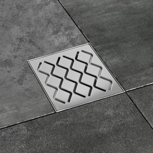 Az SN501 hullámmintás padlóösszefolyó különösen alkalmas a zuhanysarkokhoz, fürdőszobákba valamint ipari területeken. Az építési magassága 104 mm. Rozsdamentes acél perem. Az alsó szigetelő gallér külön rendelhető SN501-hez 300x300 mm.