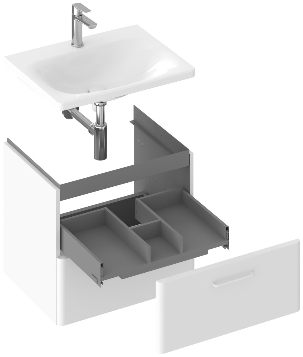 Az SD Balance II 80 függesztett szekrényt fehér színkivitelben kínáljuk. A szekrény belső tere grafit színű. A szekrény előfúrt furatokkal rendelkezik a fogantyúkhoz, amelyek nem részei a szekrénynek, és külön kell megvásárolni. Három színben kaphatók: fényes króm, fekete vagy fehér. Két praktikus fiók lassú lefutással elegendő tárolóhelyet biztosít. A szekrény a Balance 80 aláépíthető mosdóhoz van tervezve túlfolyó nélkül, fix kifolyóval ellátott mosdó szifonnal kiegészítve. A szekrényt kiegészítheti a Balance 80 fehér lappal és a laphoz való mosdóval, vagy a Balance 120 lappal, a Balance/Comfort 120 lap konzollal, a Balance fehér törölközőtartóval és a laphoz való mosdóval (pl. Uni / Uni Slim sorozat). Két szekrényt egymás mellett a Balance 120 lappal lehet kiegészíteni, így nagyvonalú tárolóhelyet és lerakó felületeket nyerhet.Összeszerelt állapotban szállítjuk, szerelési készlettel együtt. A szekrényt a falra szerelik.A fürdőszoba egységes megoldásának és design harmóniájának érdekében javasoljuk, hogy az SD Balance II 80 szekrényt kombinálja a Balance II sorozat többi termékével és a többi Ravak termékkel.
