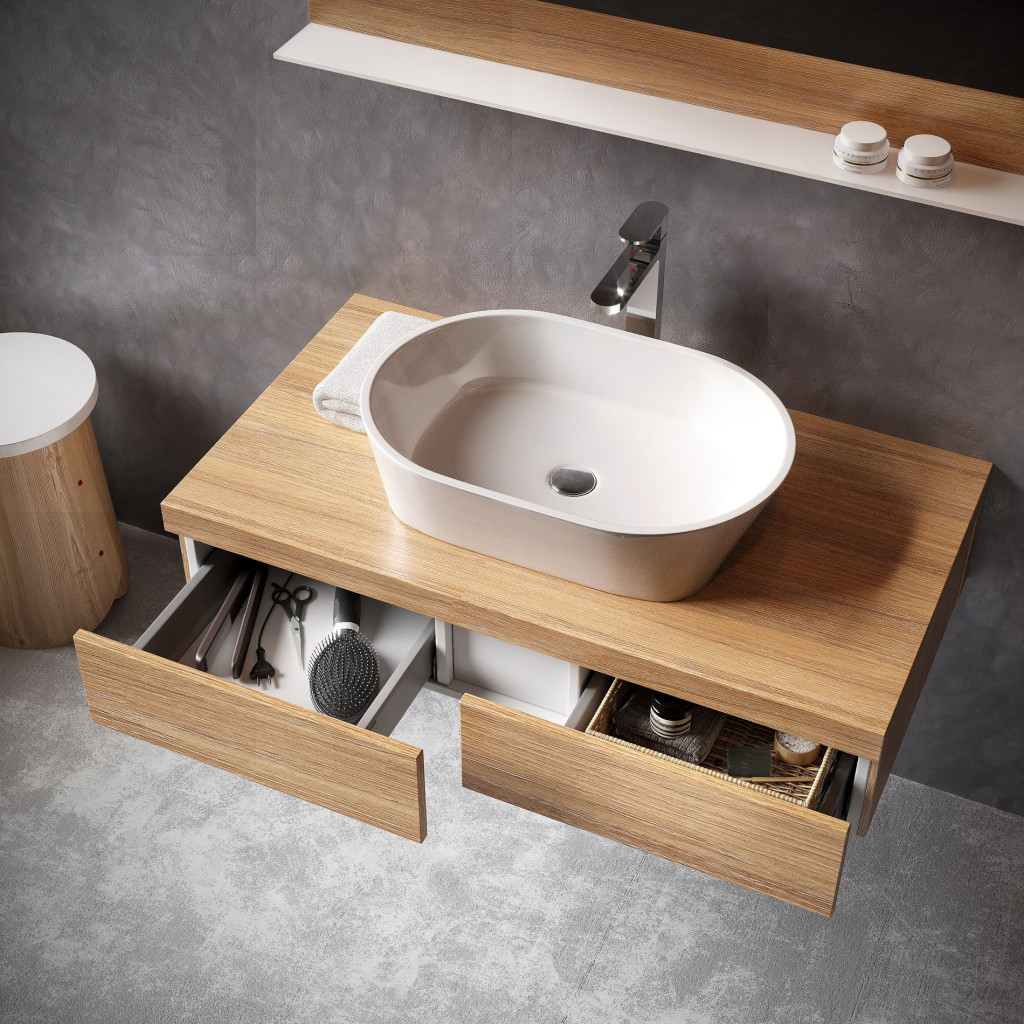 A Formy mosdótál alatti szekrény a Formy mosdótál alá készült. A szekrény hosszában két fiókkal rendelkezik. Összeszerelt állapotban szállítjuk, szerelési készlettel (csavarok, zsanérok, dugók). A szekrény a falra szerelhető. A fürdőszoba egységes megoldásához és design összhangjához javasoljuk a Formy mosdótál alatti szekrényt kombinálni a Formy koncepció többi termékével (Formy I és Formy II mosdótál, Formy tükrök, SB Formy oldaloszlop), csaptelepekkel és más Ravak termékekkel.