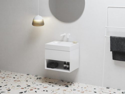 Az SD Lite 60 mosdószekrény Lite 60 és Lite 60/45 B/J mosdóhoz készült. Elülső fiókkal és polccal van felszerelve. A szekrényfiók az előlap alsó szélének meghúzásával nyílik. Összeszerelve szállítjuk, beleértve a rögzítőkészletet (csavarok, zsanérok, zárósapkák). A szekrény a falra van szerelve.